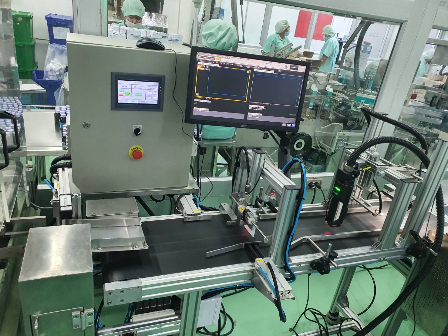 เครื่องพิมพ์กล่องและระบบ Vision ติดตั้งกับเครื่อง Cartoner